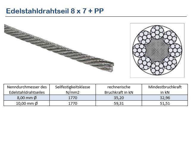 Produktinformationen "Edelstahlseil 1.4301 8x7+PP"